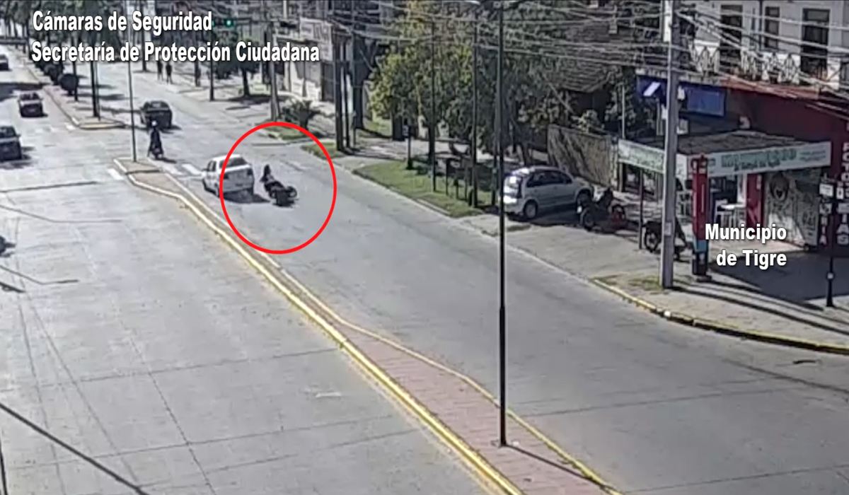 En la localidad de Benavídez, las cámaras del Centro de Operaciones Tigre (COT) detectaron la colisión entre una moto y un automóvil que circulaban en el mismo sentido. El SET asistió al lugar pero no fue necesario el traslado de la motociclista.