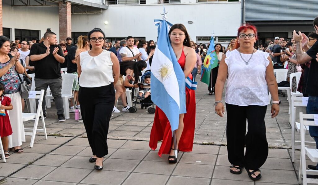Carla Duarte, vecina de Tigre centro que culminó sus estudios y fue abanderada del acto, mencionó: “Esto es increíble. Me ayudó en el horario porque también trabajo y se me complicaba. Con mis compañeros somos muy unidos e hicimos un grupo hermoso. Tuvimos cinco docentes diferentes y fueron re copados todos. Estoy contenta, acompañada por mis dos hermanas y mi cuñado”.