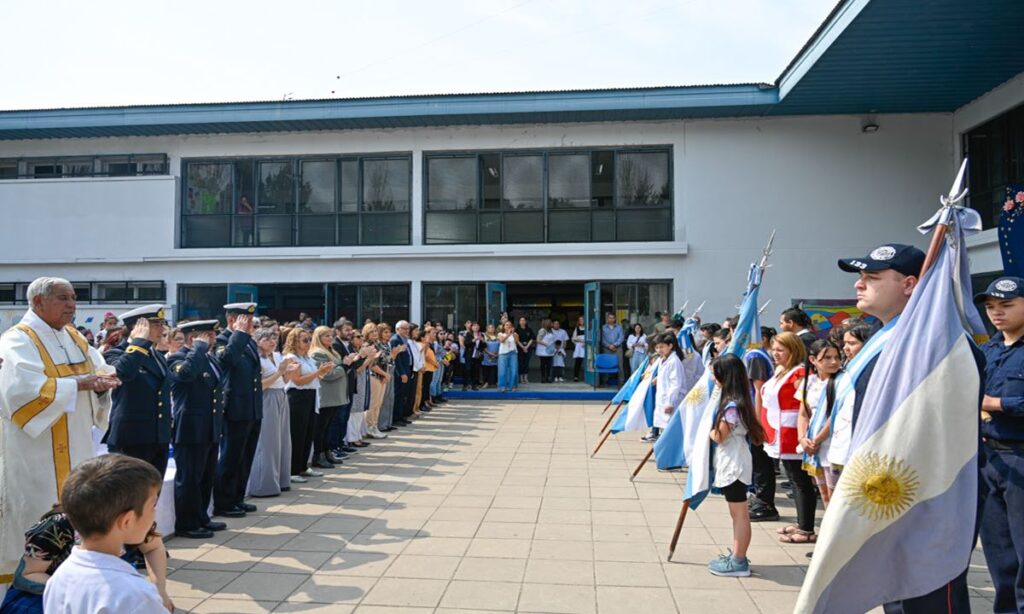 La actividad comenzó con el izamiento de la bandera nacional y el ingreso de los emblemas patrio y provincial portados y escoltados por alumnos de la escuela y los Bomberos Voluntarios de General Pacheco. Luego de las estrofas del Himno Nacional, brindaron sus palabras directivos, ex directivos y docentes de la escuela, quienes repasaron la historia del establecimiento. Por su parte, el intendente destacó a la educación pública como una herramienta fundamental para formar comunidad y encabezó la entrega de reconocimientos a maestras por su trayectoria.