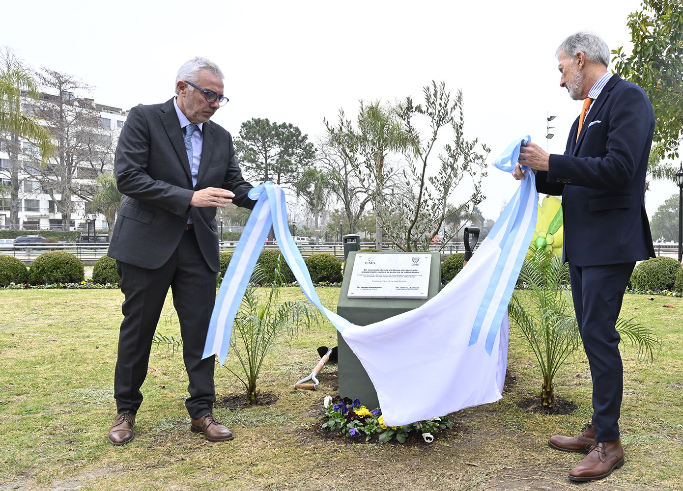 Por su parte, el presidente de la DAIA, Jorge Knoblovits, expresó: «El Municipio y la DAIA honran a los muertos a 28 años de este atentado terrorista, tal y como lo indica la placa que fue descubierta. Es un acto reivindicativo; seguimos pidiendo justicia e invocamos a la memoria. Esta petición hecha por un organismo de la sociedad civil como la DAIA, y el Estado como es el Municipio de Tigre, acredita que esto fue un atentado contra la República Argentina y no es solamente un tema de la comunidad judía».