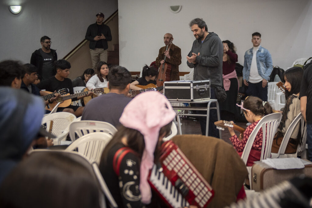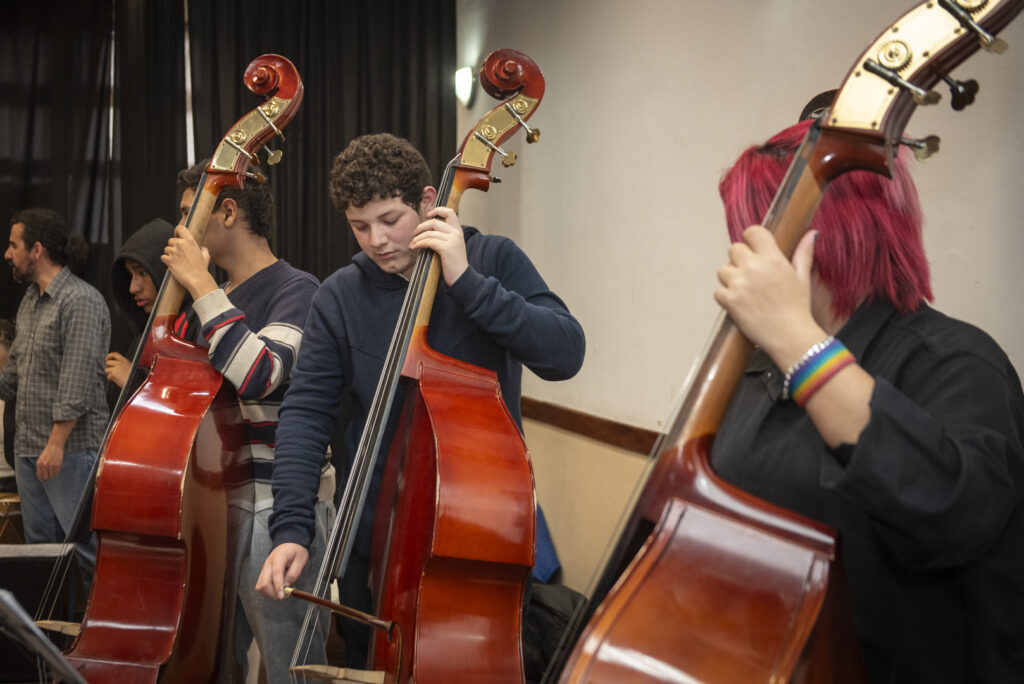 Durante el ensayo – llevado adelante en el SUM de la Delegación de Ricardo Rojas – se hizo la entrega de nuevos instrumentos musicales para ambas agrupaciones, otorgados por el Ministerio de Cultura de la Nación.