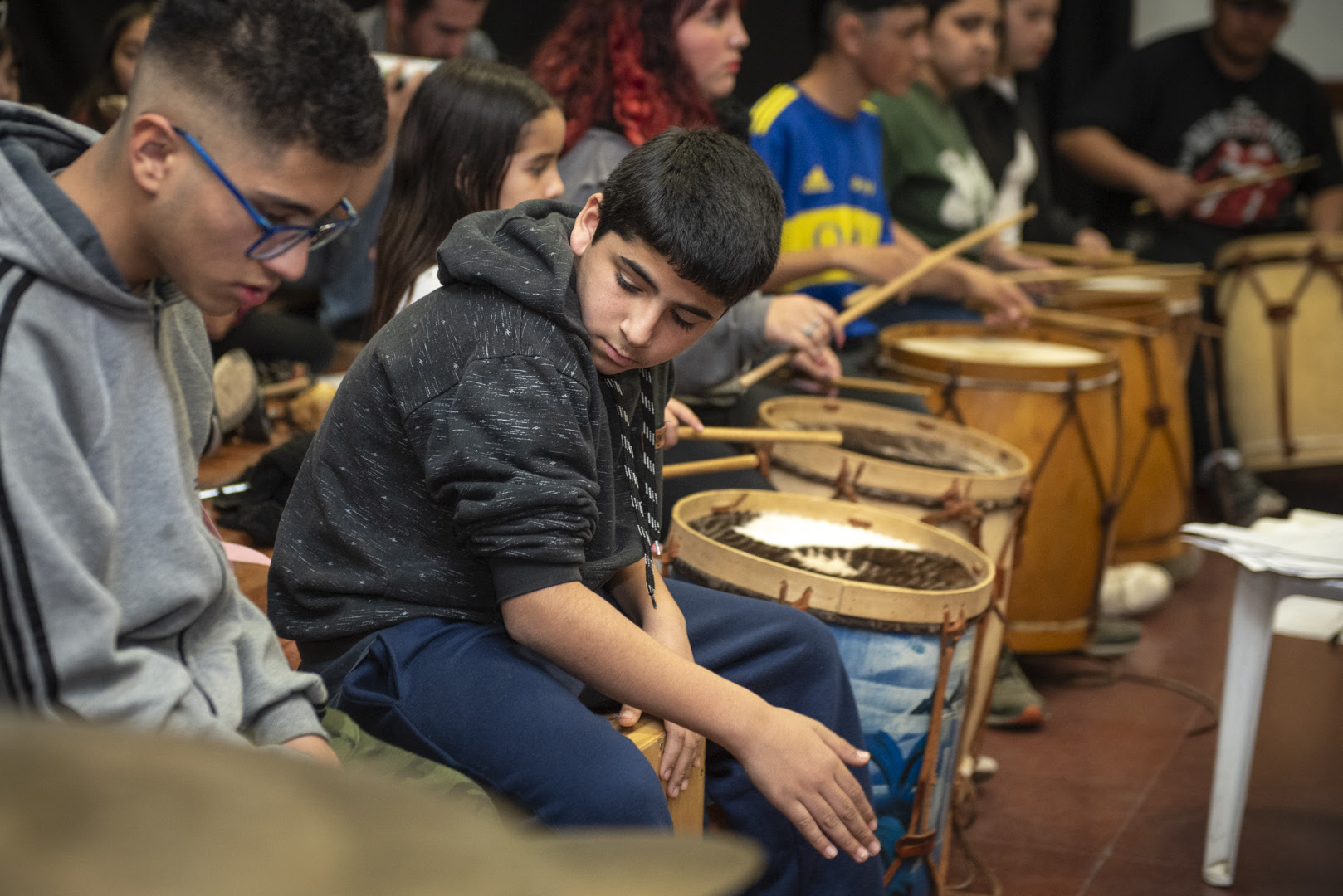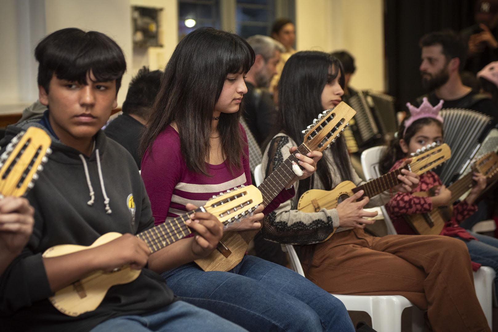 Durante el ensayo – llevado adelante en el SUM de la Delegación de Ricardo Rojas – se hizo la entrega de nuevos instrumentos musicales para ambas agrupaciones, otorgados por el Ministerio de Cultura de la Nación.