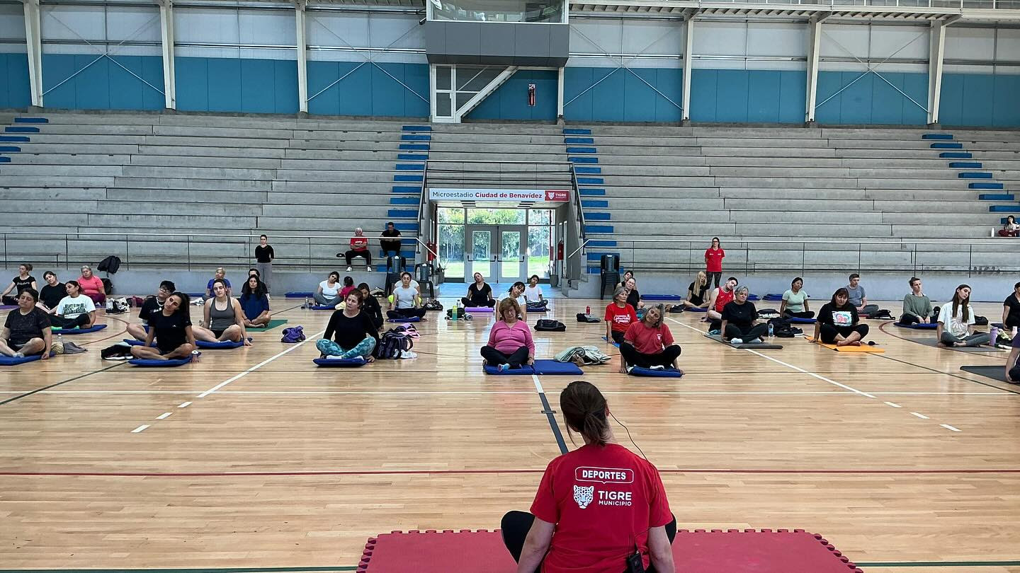 La gestión local ofreció la iniciativa libre y gratuita de forma simultánea en los polideportivos N° 4 Martín Miguel de Güemes de Benavídez y N°7 Tercera Edad de Rincón de Milberg. El objetivo de la actividad es promover la vida saludable a los vecinos y vecinas