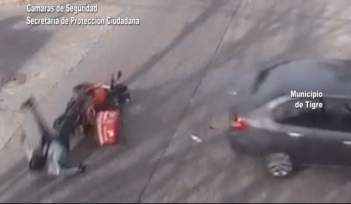 Las cámaras de videovigilancia del Centro de Operaciones Tigre (COT) registraron el accidente de tránsito en la intersección de las calles Garibaldi y José C Paz. Los agentes locales alertaron el hecho y activaron el procedimiento correspondiente. Médicos del Sistema de Emergencias Tigre trasladaron al hombre que realizaba delivery al hospital más cercano